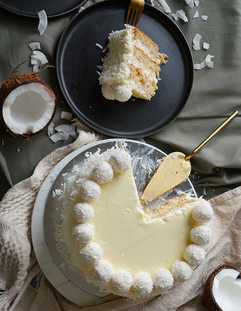 Bringing the exotic allure of the tropics to our menu, this coconut- flavour infused cake is elegantly decorated with shredded coconut, providing a taste of the sun-soaked islands in every delectable slice.