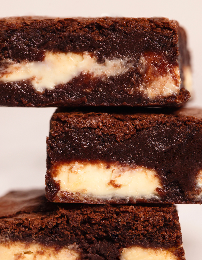 A sweet temptation staring a moist, velvety brownie kissed by the creamy allure of white chocolate.